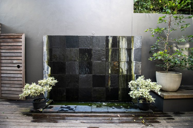 The outdoor entertainment spaces are equally impressive, featuring an artisan pizza oven, and a captivating water feature, creating a serene atmosphere for gatherings or quiet relaxation.