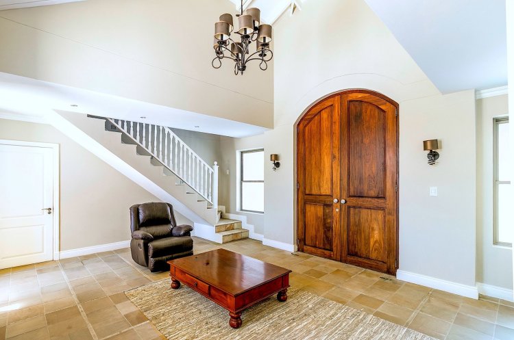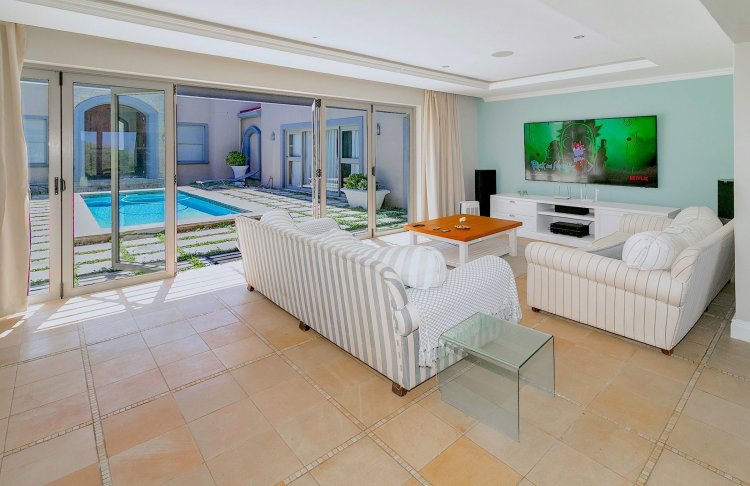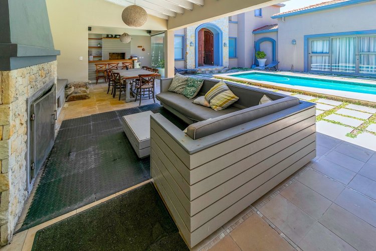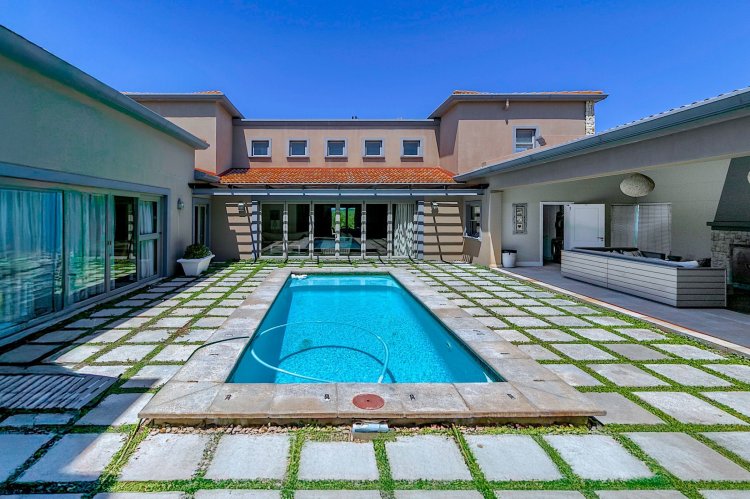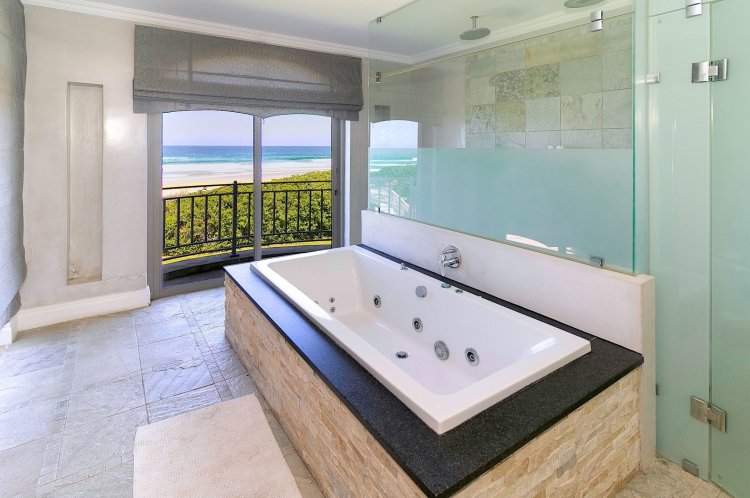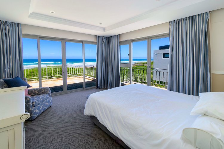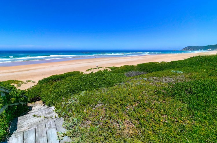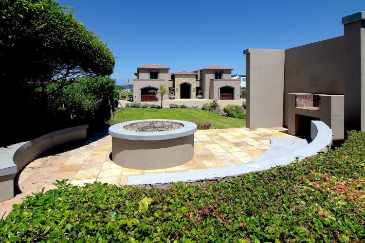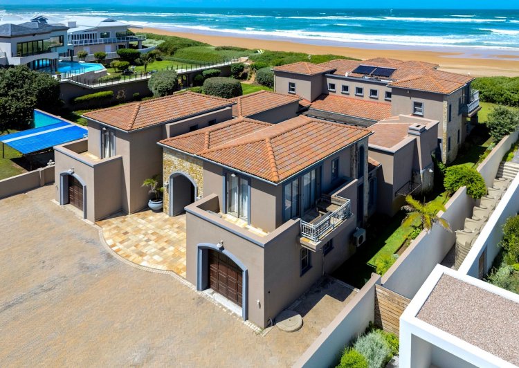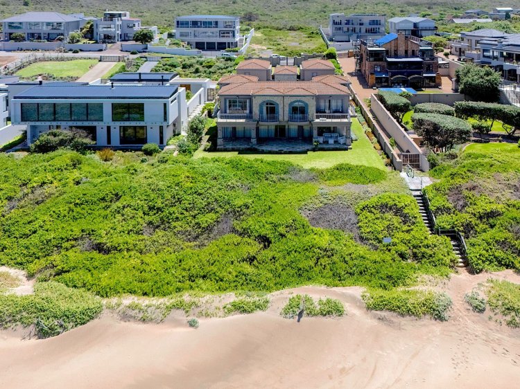 Situated along the pristine Sedgefield coastline, in the heart of the Garden Route, this exceptional beachfront residence enjoys uninterrupted ocean views and direct access onto peaceful Myoli Beach where you can enjoy extended beach walks along the fossilised dunes towards Buffalo Bay or the Swartvlei Estuary and Gericke's Point. Set among similarly upmarket residences, the generous proportions and multiple entertainment areas in this home offer a beachfront lifestyle to be envied. Imposing double doors open into a vast entrance hall, flanked by two automated garages with private bachelor flatlets above each — ideal for extended family, guests or rental potential. A sheltered central courtyard forms the heart of the home and is bordered by an expansive undercover entertainment patio on one side and a luxurious guest suite on the other. The sea-facing living areas feature a formal lounge flowing into an entertainer's dining room and cigar lounge/study which each open onto a sea-facing covered patio and garden with a private path leading directly onto the beach. The well-appointed kitchen includes a gas hob, built-in ovens and a separate scullery, with easy flow to both indoor and outdoor entertainment areas. Upstairs offers three spacious bedrooms (main en-suite) and two bathrooms. Each bedroom enjoys its own sea-facing balcony with panoramic ocean views. The location and scale are unsurpassed. This is a fantastic opportunity to restore this home to its former pristine condition with selective maintenance and light refurbishment to your taste required.