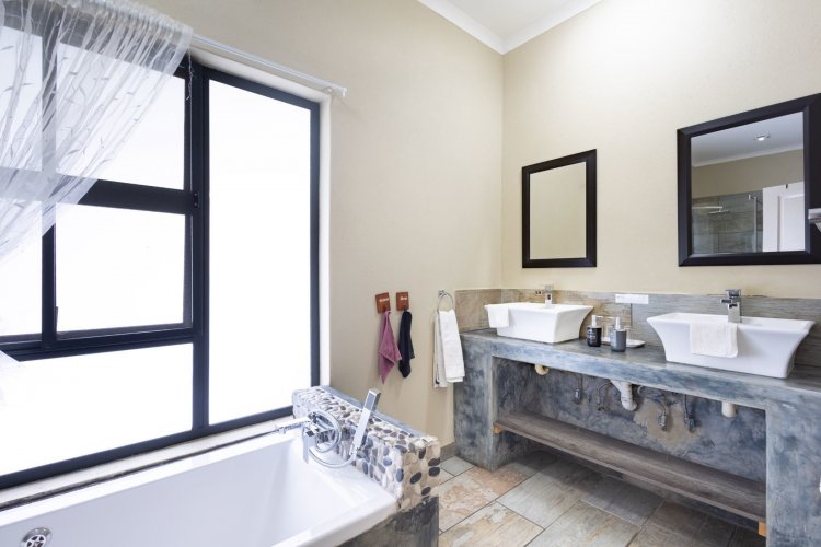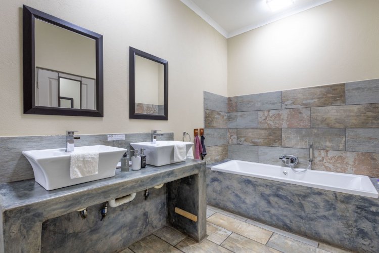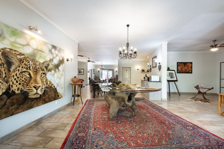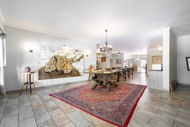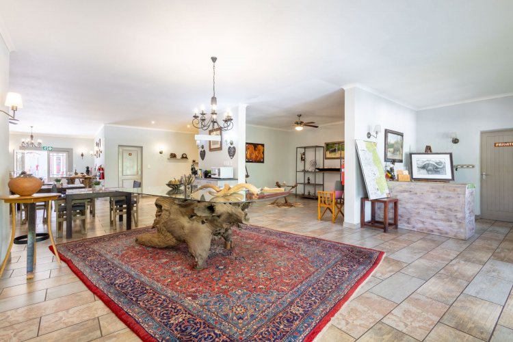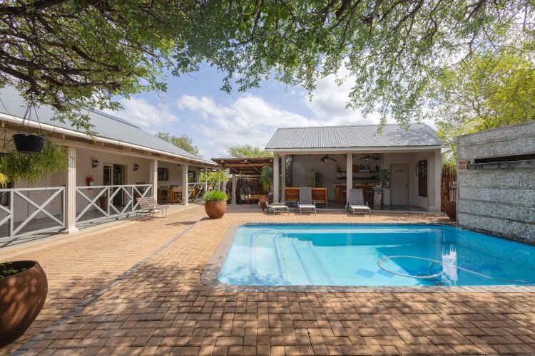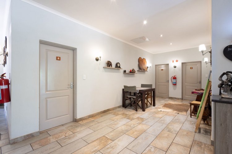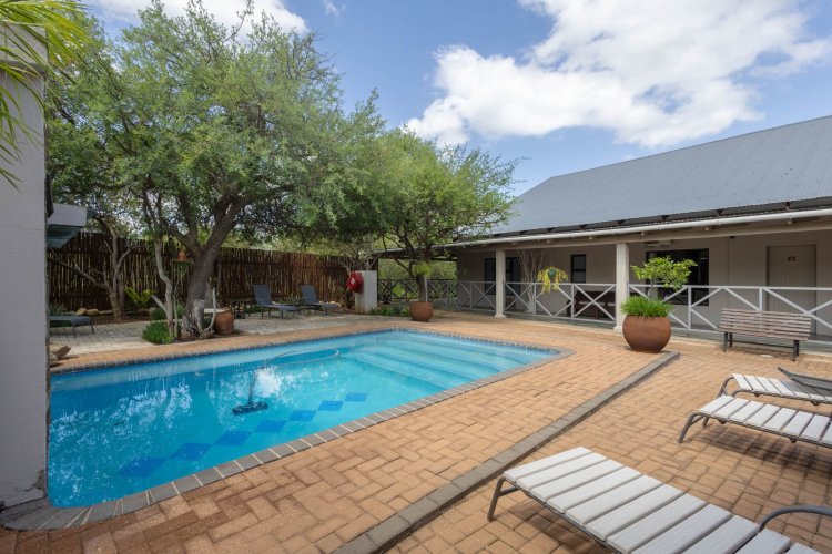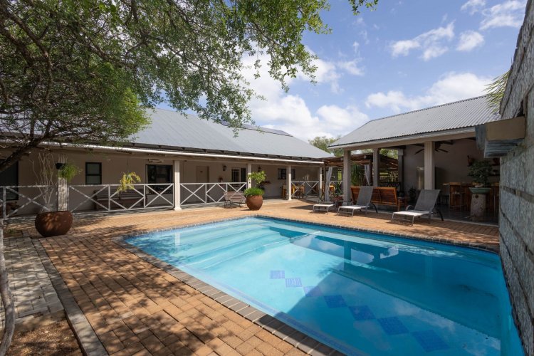Key Features • 6 En-suite guest rooms • Private owner's quarters • Office and reception area • Fully equipped kitchen • Laundry facilities • Central lounge and dining room • Swimming pool • Bar with external guest toilet • Carports and guest parking • Solar system: 16 kVA inverter, 20 kVA battery, 18 solar panels • 5,000-litre water storage system • Tool room • Store / staff room