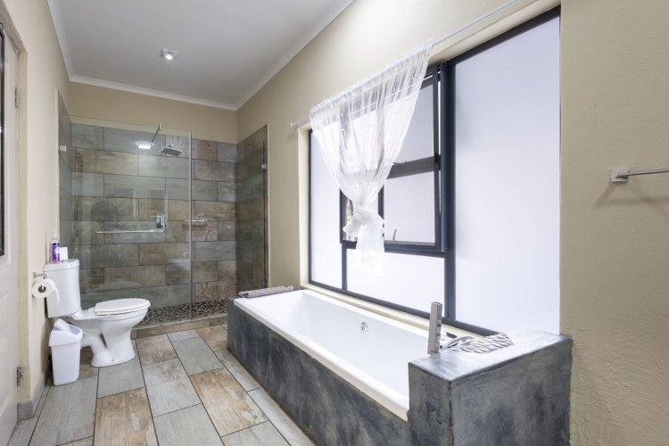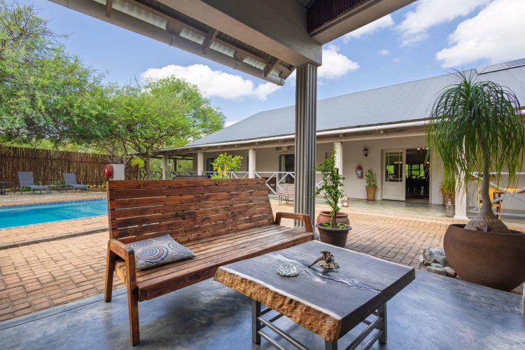 An exceptional opportunity to acquire a well-known and fully operational guest house located within the sought-after Hoedspruit Wildlife Estate. The property features six spacious en-suite guest rooms along with a private owner's residence, making it ideal for a seamless live-in management setup. The main building is designed in a charming colonial-style farmhouse layout, complete with a wraparound patio that provides direct outdoor access to all guest rooms. Each room offers generous space and includes an en-suite bathroom equipped with a bath, shower, double basins, and toilet. Additional in-room amenities include air conditioning, a minibar fridge, and DSTV. A central lounge and dining area form the heart of the guest house, providing a welcoming space for guests to relax and enjoy meals. Outdoor facilities include a swimming pool, a bar area, and ample seating and lounging space for guests to unwind. The property offers two carports and six dedicated guest parking bays. It is sold fully furnished as a going concern, free from liabilities.