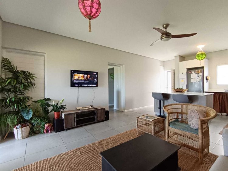 Discover this exceptionally spacious 1-bedroom penthouse in the sought-after Manor Estates. At 80m², it offers far more room than a typical 1-bed apartment, with a generous open-plan layout and modern finishes throughout. The standout feature is the large covered patio, fully enclosed with seamless glass doors, creating an ideal indoor-outdoor living space while showcasing stunning inland views over the sugarcane fields.