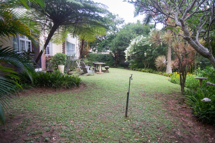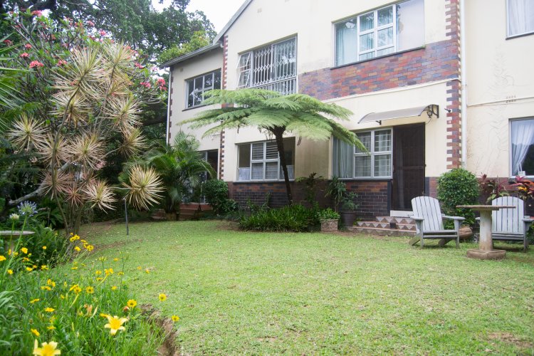 There is a tiled entrance hall, separate fitted kitchen and open plan lounge cum dining room with parquet flooring adding warmth and charm. The lounge opens out to the pretty communal garden lawns. The bedroom is generous, fitted with a fan and also features the olde-world parquet. Adjacent to both the lounge and bedroom is an enclosed veranda which could easily serve as a study or guest room. There is a shower bathroom and a separate guest WC. Additionally, the unit has a single lock-up garage and a storeroom.