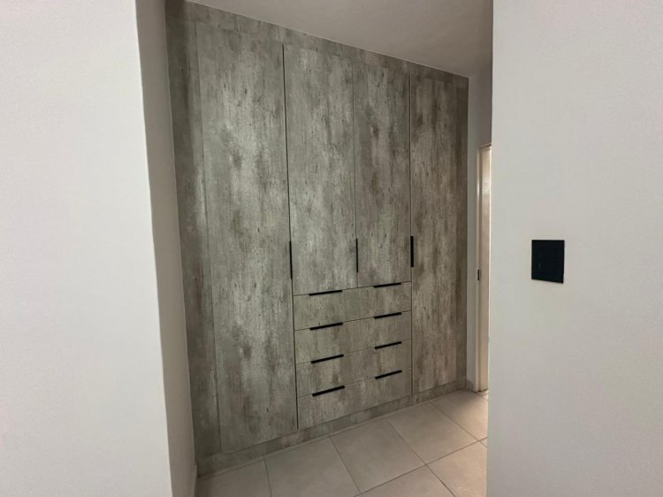 The unit features built-in cupboards throughout, providing ample storage and a clean, organized feel. Enjoy a modern kitchen designed with sleek finishes and practical convenience.