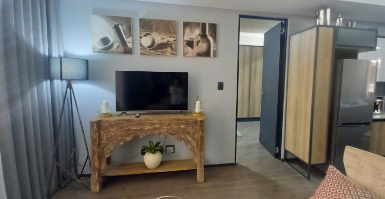 This apartment is ideal for the young and upcoming professional people in a prime location. There is a free shuttle bus service included between the hours of 07h00 and 19h00 weekdays.(. Has to be booked I advance and the radius is 10km) Features: 2 bedrooms and 2 bathrooms Built in cupboards in bedroom and kitchen High quality finishes, quartz kitchen tops, gas stove and geyser and high quality vinyl floors Open plan kitchen and living areas Wooden screens on balconies for privacy Integrated DSTV systems and dishes Finishes carefully selected for easy maintenance in unit. Burglar proofing on all open windowS Indoor Gym (no visitors allowed to use) Entertainment and braai areas available – needs to be booked In advance Water monthly fixed charge – R350 Gas, water and electricity gets bought on the banking app using the correct meter number 24- hour security and guard house. Fridge, microwave, washing machine, dishwasher and television all included on successful transactions. Call me today to arrange for viewing.