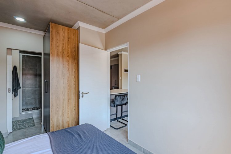 This modern 2-bedroom,2-bathroom apartment offers comfortable and convenient living in a secure complex.The main bedroom features an en-suite bathroom for added privacy , while the second bedroom is serviced by a separate bathroom. The apartment boasts an open-plan kitchen and lounge area, creating a spacious and inviting atmosphere ideal for both relaxation and entertaining.