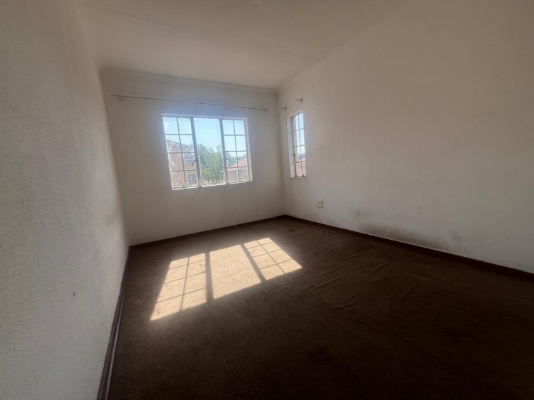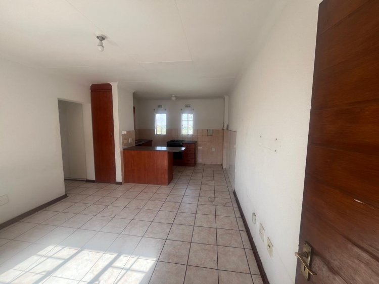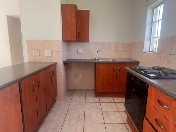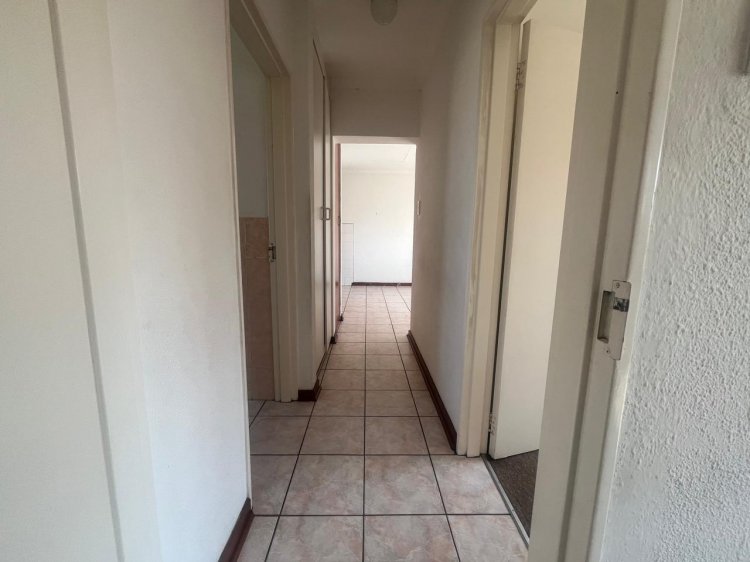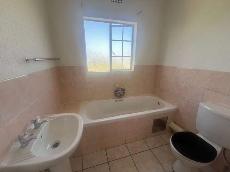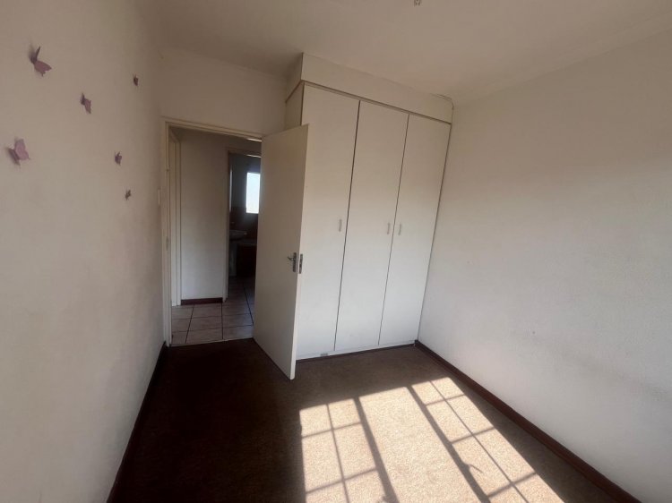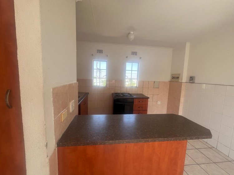 This is a two-bedroom upstairs unit with an open plan living and kitchen area. The kitchen has ample cupboard space with melamine finishes. The bathroom is fully tiled with a bath, basin and toilet. The unit also has a spacious balcony.