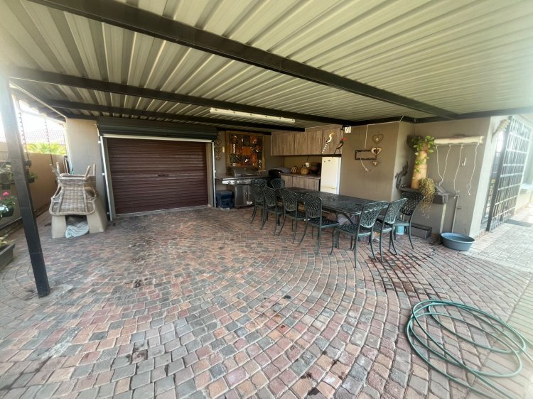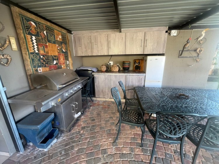 Notable features include double electric fencing, pre-paid electricity, LED lighting, a Jojo tank with a pump, laundry facilities, a main bedroom with a dressing area that opens to the garden, an indoor braai, and blinds throughout.