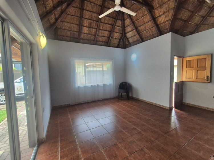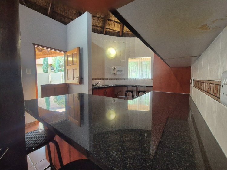 ‘n Glaspaneel-skuifdeur in die sitkamer lei na ‘n pragtige ingeboude braai-area en lapa – perfek vir buitelug-kuiergeleenthede saam met familie en vriende. Die erf bied genoeg spasie vir gemaklike buitelewe, met ‘n rustigheid wat net die bosveld kan bied.