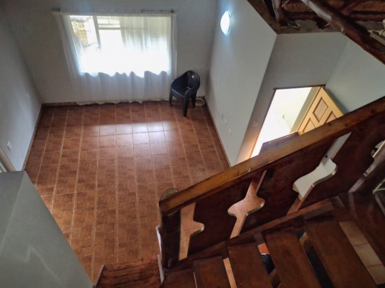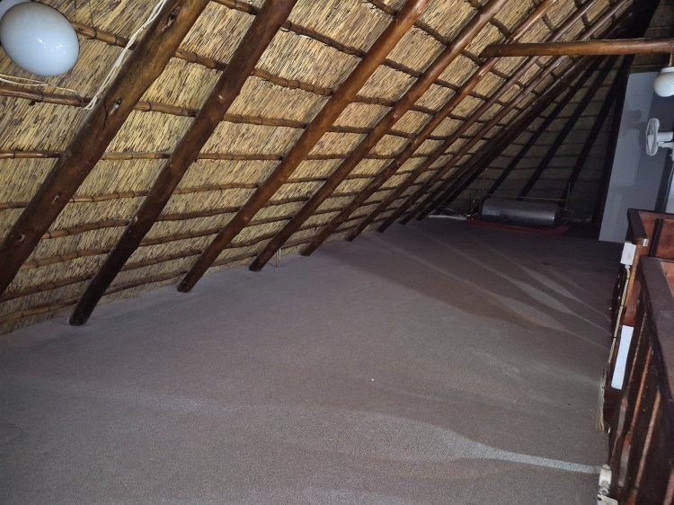 Langs die kombuis lei houttrappe na ‘n knus solder (loft), wat volop ruimte bied vir twee enkelbeddens – ‘n ware avontuurplek vir kleinkinders, of alternatiewelik as ekstra stoorplek of ‘n kreatiewe ateljee vir naaldwerk, kuns of stokperdjies.