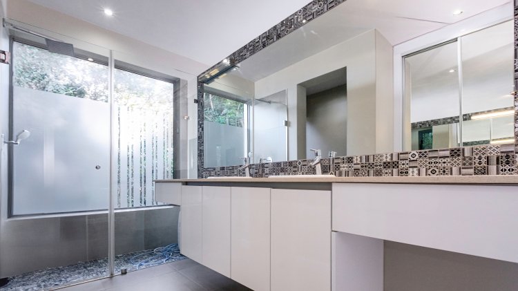 The upper level, accessible via stairs or lift, features two beautifully appointed en-suite bedrooms, thoughtfully designed as almost mirrored sanctuaries. A versatile study/lounge area with sweeping views provides the perfect spot to work, read, or simply pause.