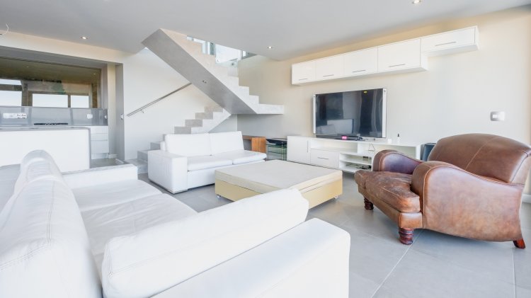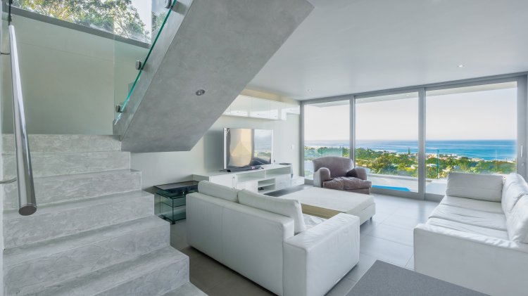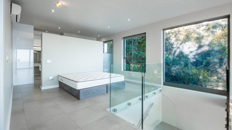 The first-floor living area is a seamless blend of space, light, and panoramic views. Floor-to-ceiling windows frame the breathtaking landscape, immersing you in the surrounding paradise. The open-plan design invites you to relax and unwind — and when the moment calls, take a dip in the elevated plunge pool just steps from your lounge.