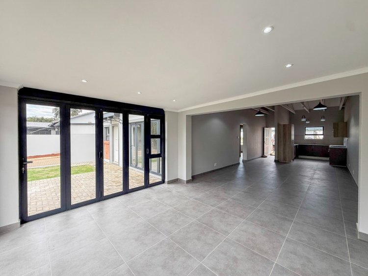 The home is modern, light-filled and easy to maintain, with an open-plan kitchen finished with quartz countertops flowing seamlessly into a comfortable living area. Sliding doors lead out to a patio with a built-in braai, creating a welcoming space to enjoy peaceful mornings, relaxed afternoons or time spent with visiting family and friends.