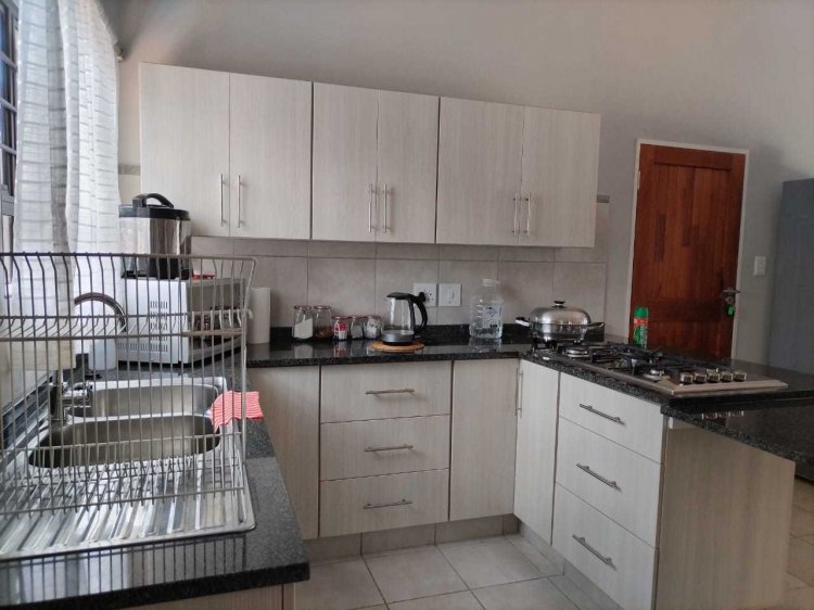 The home features a well-designed open-plan kitchen and lounge, creating a light-filled and welcoming living space. The kitchen is fitted with a gas stove and electric oven, ideal for effortless everyday cooking.