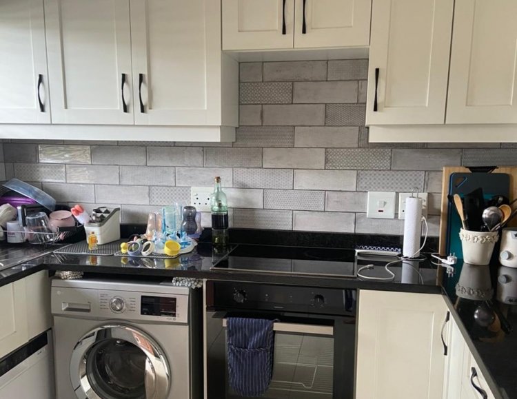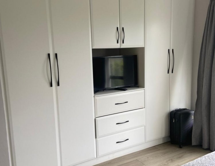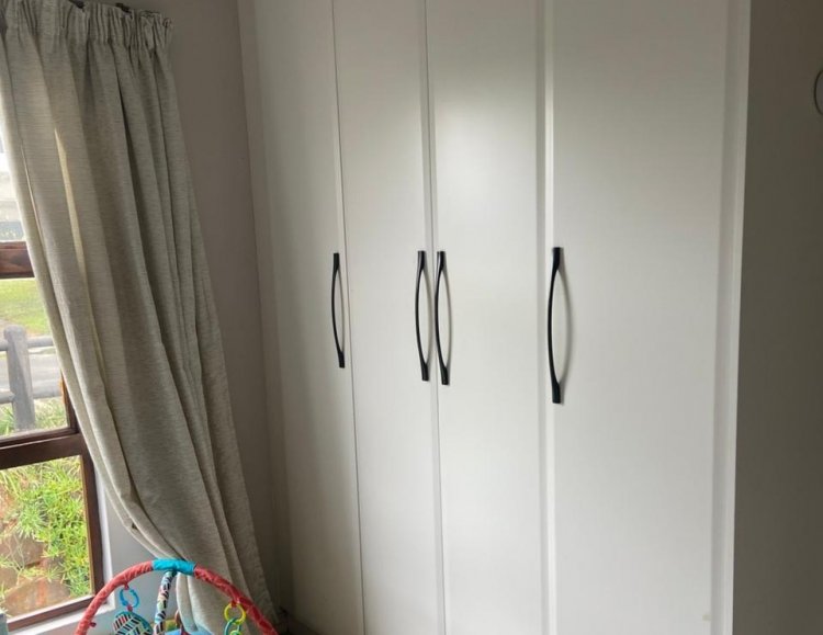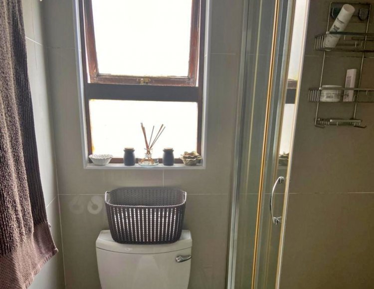 The second bedroom is well lit and includes built-in cupboards. Both bedroom floors are laminated, making them modern and easy to clean.