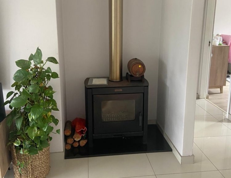 The lounge features a freestanding fireplace—perfect for those chilly winter nights.