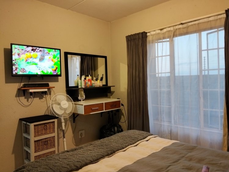 Discover comfortable and convenient living in this charming two-bedroom ground floor unit, perfect for first-time buyers, young professionals, or those looking to downsize. This well-maintained property offers a blend of modern finishes and functional design, providing an inviting atmosphere for its new owners. Key Features • Two Spacious Bedrooms: Both bedrooms feature built-in wardrobes, ample natural light, and enough space for queen-sized beds. • Open-Plan Living Area: The generous lounge and dining area seamlessly connect to the kitchen, creating a welcoming space for relaxation and entertaining. • Modern Kitchen: Equipped with quality appliances, space for 2 under counter appliance, plenty of storage, and stylish countertops, the kitchen is ideal for home chefs. • Private Patio/Garden: Enjoy direct access to your own outdoor area, perfect for hosting braais or relaxing in the fresh air. • Full Bathroom: The unit features a modern bathroom with a bathtub, shower, basin, and toilet. • Secure Parking: Includes a dedicated parking bay with additional visitor parking available. • 24/7 Security: The complex offers controlled access, security patrols, and CCTV surveillance for peace of mind. Location Benefits • Situated in a sought-after suburb with easy access to major highways and public transport. • Close to shopping centres, schools, medical facilities, and recreational parks. • Conveniently located for both city commuters and those working from home. Additional Information • Levies and Rates: Reasonable monthly levies and rates make this unit affordable to maintain. • Fibre Ready: High-speed internet connectivity available for work or streaming needs. • Move-in Ready: The unit is neat, freshly painted, and available for immediate occupation.