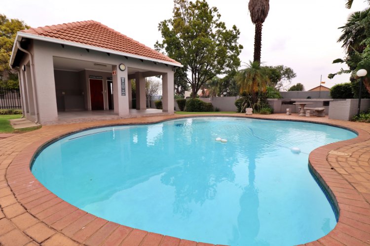 2 Bedrooms, 1 bathroom, lounge, kitchen and balcony . 1 Carport parking. Breakfast nook. The kitchen has melamine cupboards , a new oven, hob and extractor fan. Open plan lounge and kitchen . Pool and tennis court in the complex. Security- 24 hour guard. Guard house. Electric fence.Boomed off area. Pet friendly complex. Close to schools in the area and major shopping centers. Call us for a viewing. Let's find you a home .