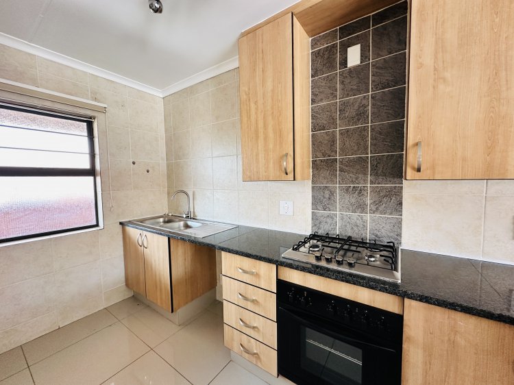 This modern and well-presented first-floor apartment within a neat and well-maintained complex boasts 2 generously sized bedrooms and a full bathroom. The modern kitchen is open-plan to the lounge, creating a bright and inviting living space. It is finished with granite countertops, a breakfast nook, provision for a gas stove, and space for a washing machine, dishwasher, and double-door fridge.