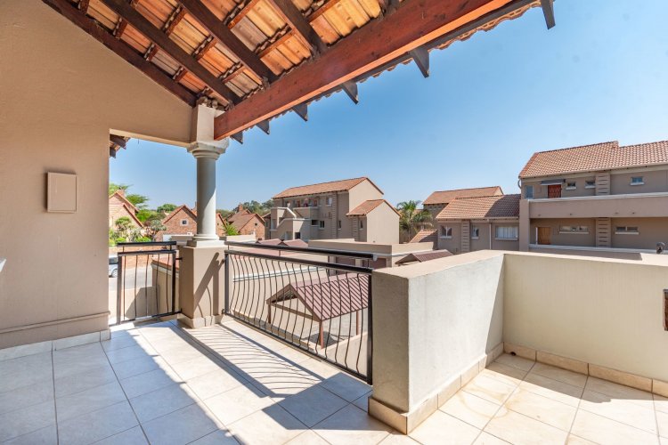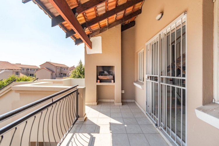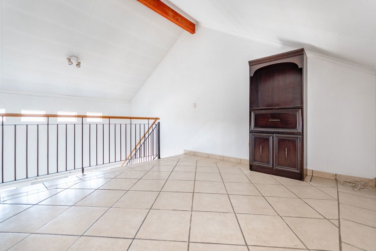 Gorgeous apartment on first floor of an estate with 24 hours manned security estate which is perfect for a young family, it hosts two bedrooms, two bathrooms, open-plan kitchen dining and lounge. The open-plan space is tiled while the bedrooms have white wooden floors so you're never short of a bright space. The kitchen is complete with a pantry cupboard. Upstairs is a large loft room which can be utilized as either a third or study. Stepping into this apartment is through a modern and spacious patio and covered braai.
