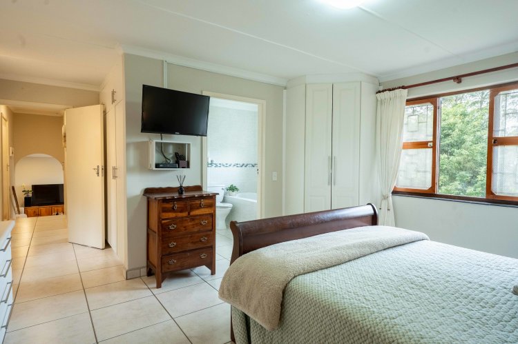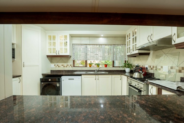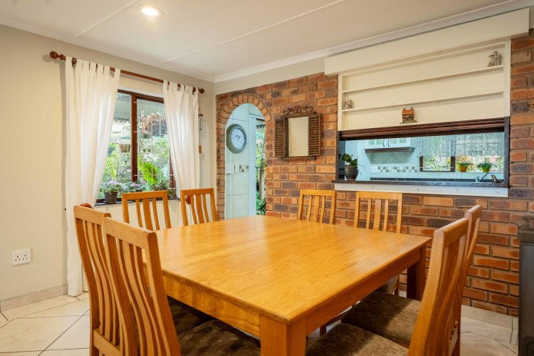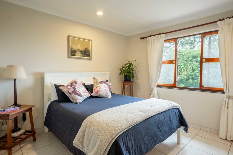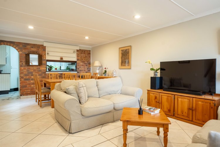 This inviting 2-bedroom, 2-bathroom townhouse is all about relaxed, easy living. The well-fitted country-style with granite tops kitchen flows into a light-filled open-plan lounge and dining area, creating the perfect space to gather with friends and family. Step out into your private courtyard, where a gentle water feature sets the mood for morning coffee or evening unwinds. Main bedroom with built in dressing table/work from home desk, bathroom en-suite, second bedroom with built-in cupboards and bookshelf, second bathroom featuring shower.