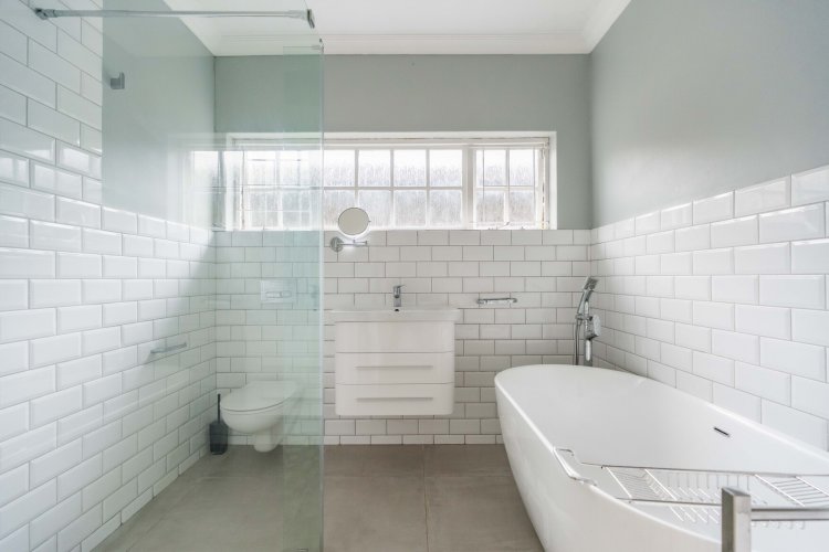 The main bedroom is generously sized, complete with built-in cupboards and a stunning, contemporary en suite bathroom. The second bedroom offers lovely garden views, with a full family bathroom and a separate guest loo. There’s also flexibility to convert part of the layout into a third bedroom or home office, perfectly catering to family needs or work-from-home living.
