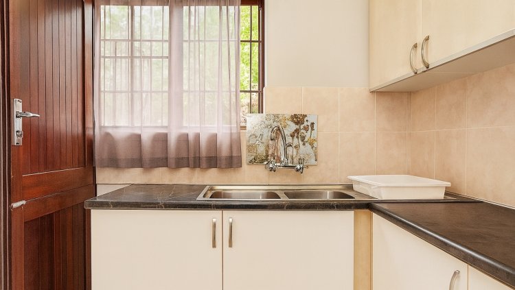 The kitchen offers excellent cupboard space and modern finishes, making meal prep enjoyable and convenient.