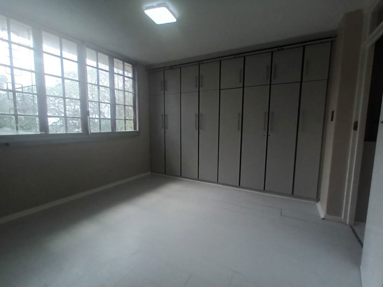 Downstairs offers the buyer an open plan kitchen, air-conditioner, and the garden. Upstairs there is a bathroom and two bedrooms with built ins.
