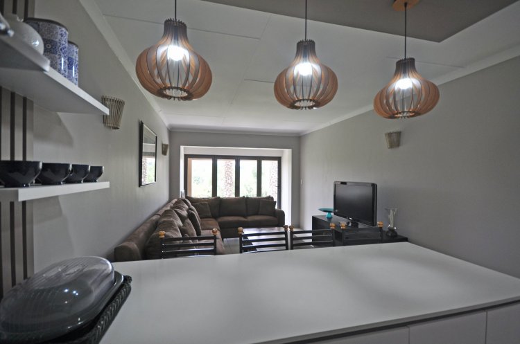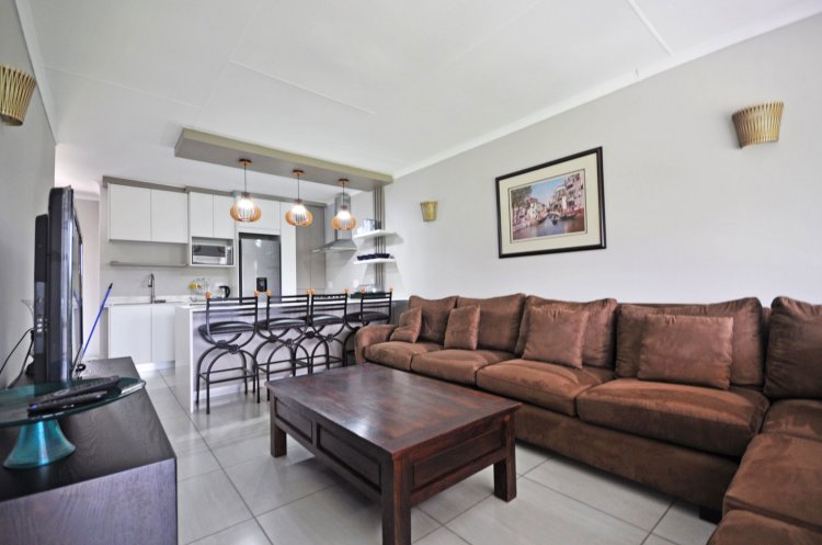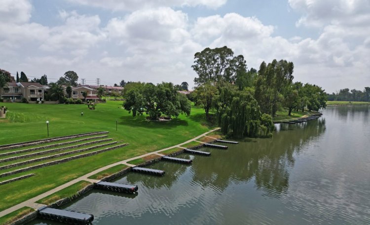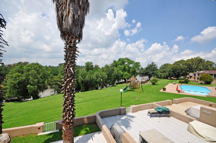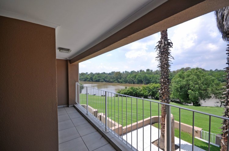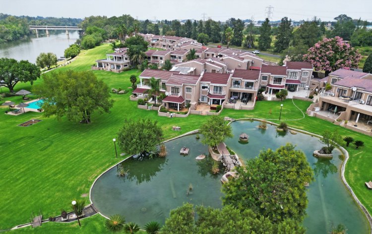 The open plan living and dining room looks onto the balcony with breathtaking views of the Vaal River and communal gardens with lush lawn. The unit is complete with a modern kitchen and sleek Ceasar stone countertops. This property is perfect for those valuing convenience and ease.