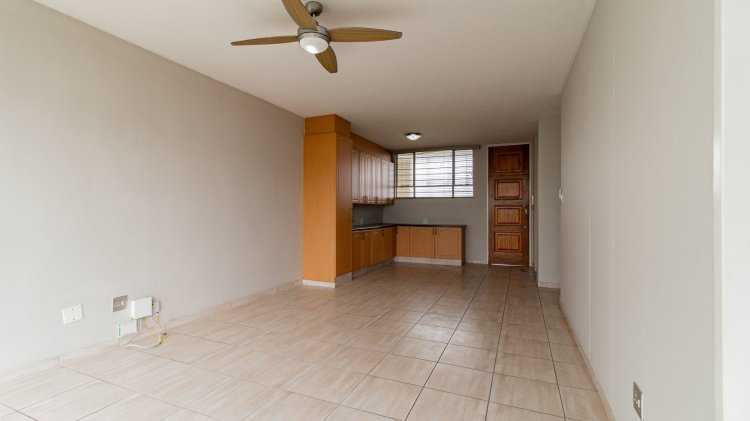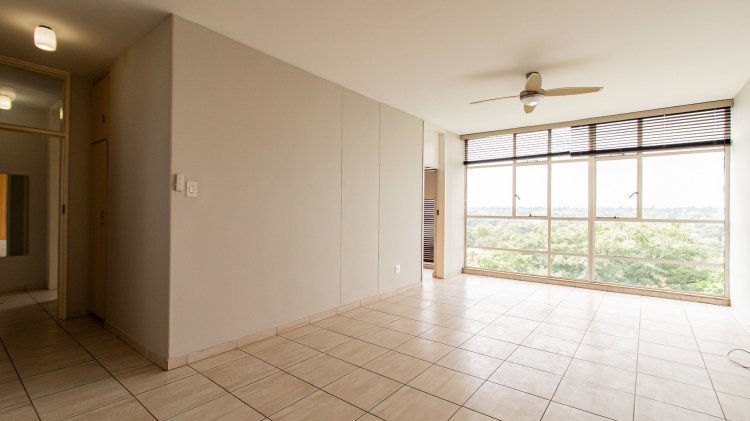 FEATURES: This spacious 111m² corner apartment is located on the 5th floor of the West Wing at Glendower Heights. It boasts an open-plan layout that seamlessly combines the kitchen, dining area, and lounge, along with an enclosed patio for added comfort.