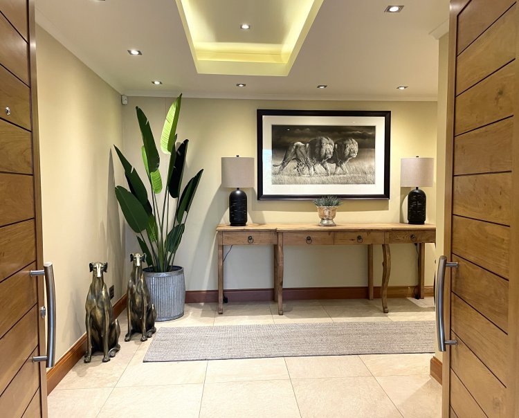 The common property has a large solar installation and backup batteries that keep the guardhouse, electric fences, beams, garden lights, stairwell lights, and cameras powered. Backup water as well.
