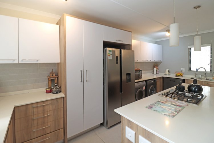 This well-maintained garden unit offers 3 bedrooms and 2 bathrooms, featuring an enclosed patio with additional built-in cupboard space and aluminium stacking doors, ideal for extended living or storage needs. While major kitchen appliances are not included, the kitchen is modern with a centre island, stone tops and gas hob, while the property includes thoughtful features such as fitted blinds and an intuitive inverter/battery switchover on the distribution board, supporting gas-heated hot water. Enhanced security measures include a Trellidor security gate to the patio, a front security gate, and additional window protection. The garden extends with added depth, providing extra outdoor space, and includes a practical garden shed. Fish Eagle View Features: 24 hour security, fibre to home connectivity, smart meters, bulk gas supplied, a swimming pool, braai and picnic areas. Complex is pet friendly. This is your ideal lock-up-and-go solution!