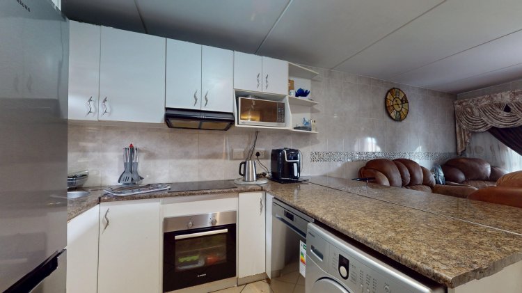 Neat and fully tiled, ground floor apartment offers: • Main bedroom fitted with built-in closets and en-suite bathroom • Two additional family bedrooms, each with built-in closets • Family bathroom fitted with shower • Enjoy modern open plan living, with the lounge extending effortlessly to an enclosed patio for year-round use. • The kitchen is equipped with two appliance connections, ideal for a dishwasher, washing machine, or tumble dryer. • Spacious private garden • Enclosed patio with built-in braai • Pre-paid electricity for convenience • One dedicated undercover parking