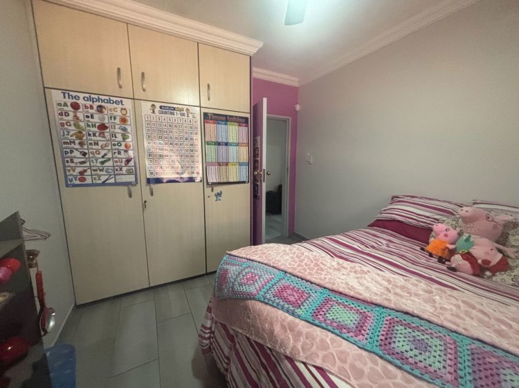 The home offers 3 generously sized bedrooms, all neatly tiled & fitted with built-in cupboards, ceiling fans, & blinds.