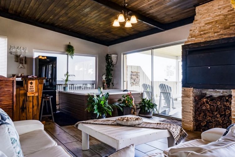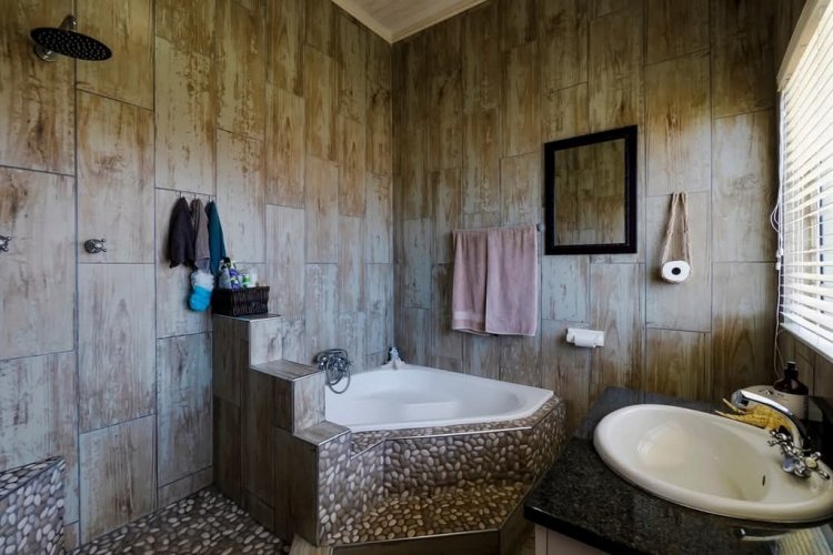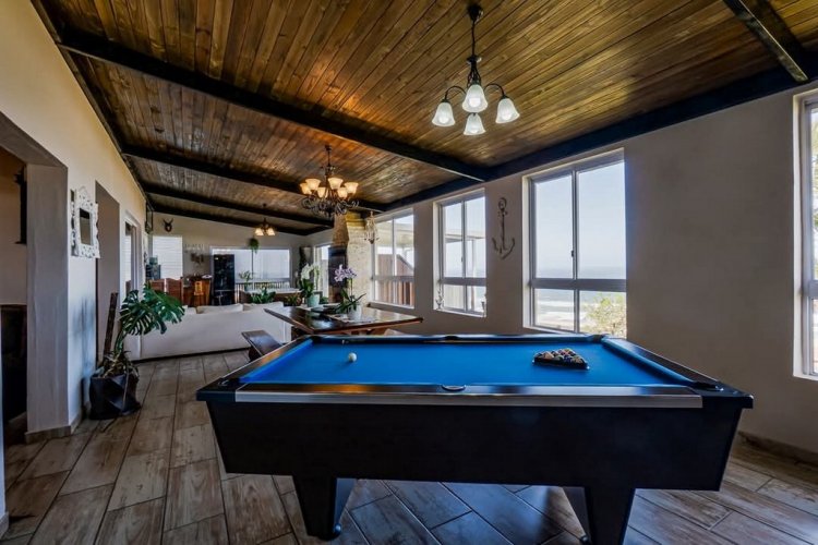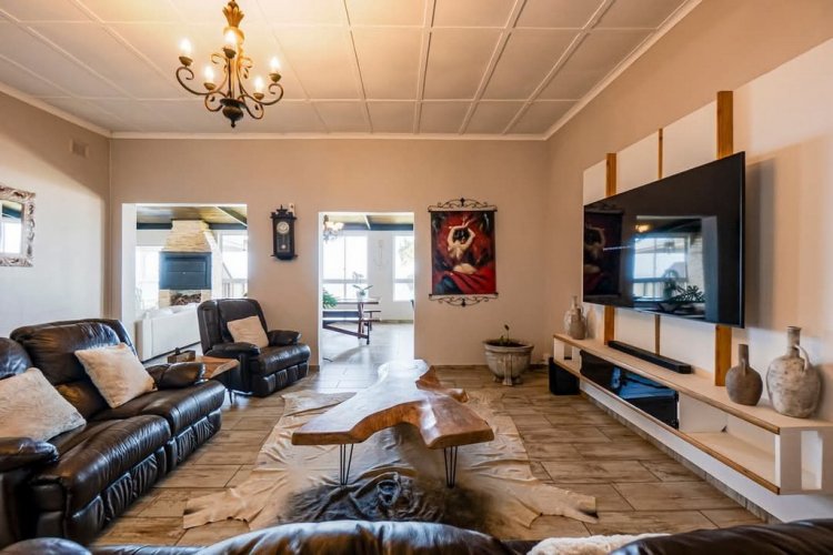 Designed for entertainment, the expansive entertainment area includes a built-in braai, a jacuzzi bar, and dining space, complemented by sliding windows that seamlessly blend indoor and outdoor living.