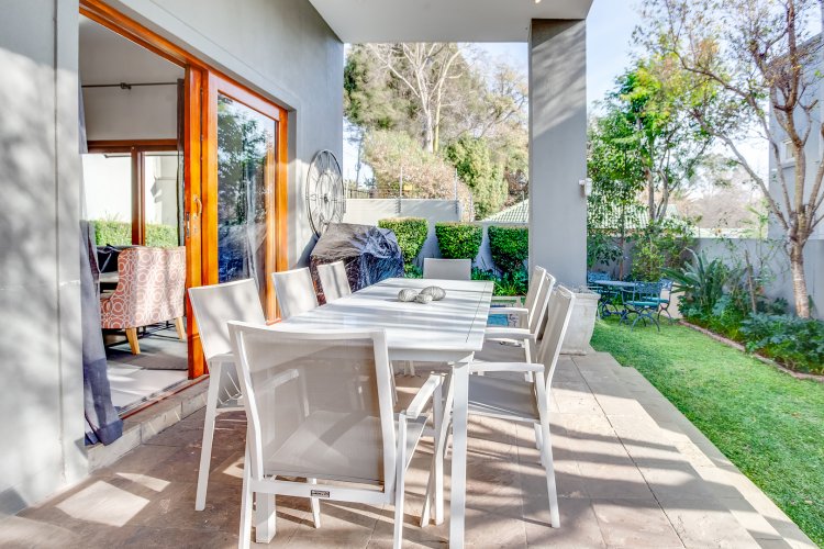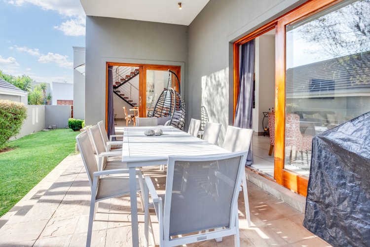 Offers from 3750 000.00... Discover your dream home in this exclusive, small gated estate. This stunning modern home offers everything you need for luxury living. 3 Spacious Bedrooms - All en-suite with elegant finishes and ample cupboard space. Unbelievable Large Balcony - Located upstairs, offering breathtaking views perfect for relaxing or entertaining. Open plan kitchen - Stylish designed kitchen, granite tops, gas hob and pantry. Open plan living - Flow seamlessly from the living room to the dining area and out onto a private patio. Sparkling Pool - Perfect for summer days, with a beautiful garden. Double Garage - Secure parking with direct access to the house.