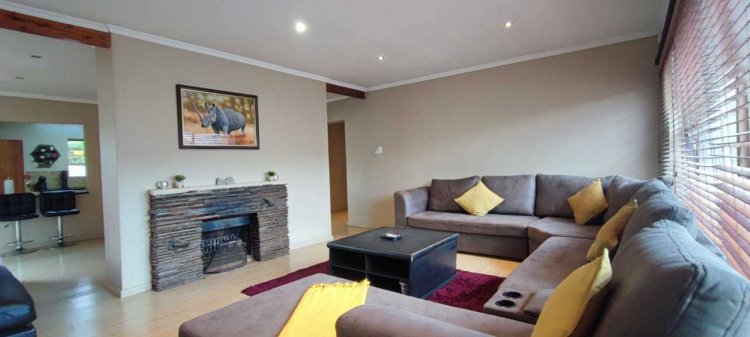 Multiple living areas — including a lounge with a cozy fireplace, dining area, and a separate family room — provide plenty of room for everyone to relax and unwind. The kitchen is well laid out with ample cupboards, and the adjoining scullery/laundry keeps everything organized and functional.