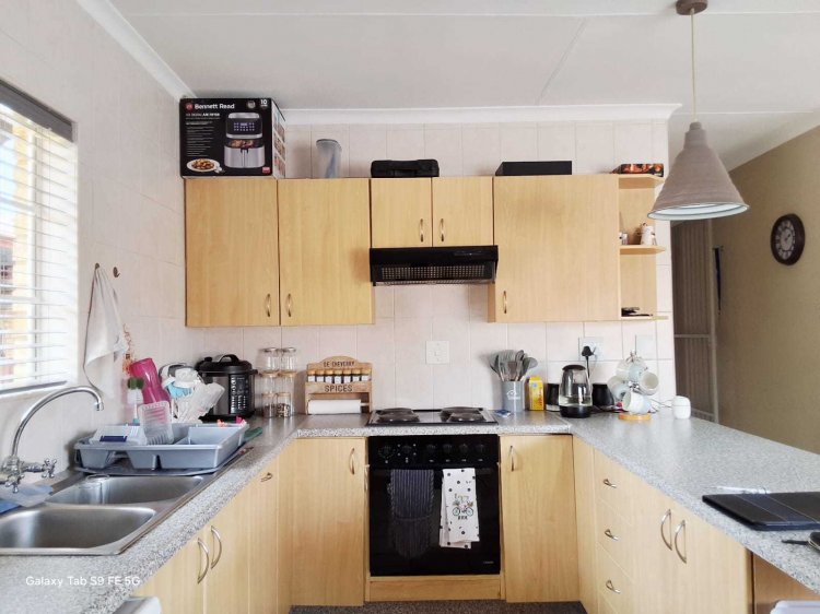 Main Property Features: • Main Bedroom: A peaceful retreat featuring a stylish en-suite bathroom and generous his and hers built-in cupboards. • Two Family Bedrooms: Bright and well-sized, offering comfort and ample storage for the whole family. • Contemporary Family Bathroom: Neatly finished and fitted with a shower. • Modern Kitchen: The heart of the home – fully fitted with two appliance connections and a large breakfast nook, perfect for casual family meals and conversation. • Open-Plan Living Area: Designed for easy flow, the lounge opens onto a covered patio with a built-in braai – ideal for relaxed entertaining all year round. • Private Wrap-Around Garden: Beautifully maintained and pet-friendly, offering a safe outdoor space for kids and pets to play. • Automated Tandem Garage: Secure parking for two vehicles with direct access to the home. • Bonus Feature: A 2000L JoJo tank with pump, connected to municipal water for added convenience and water efficiency.