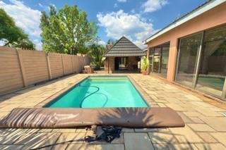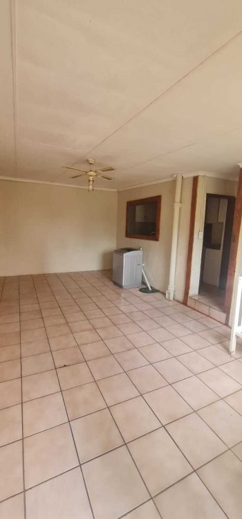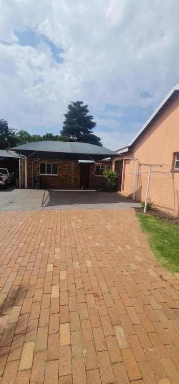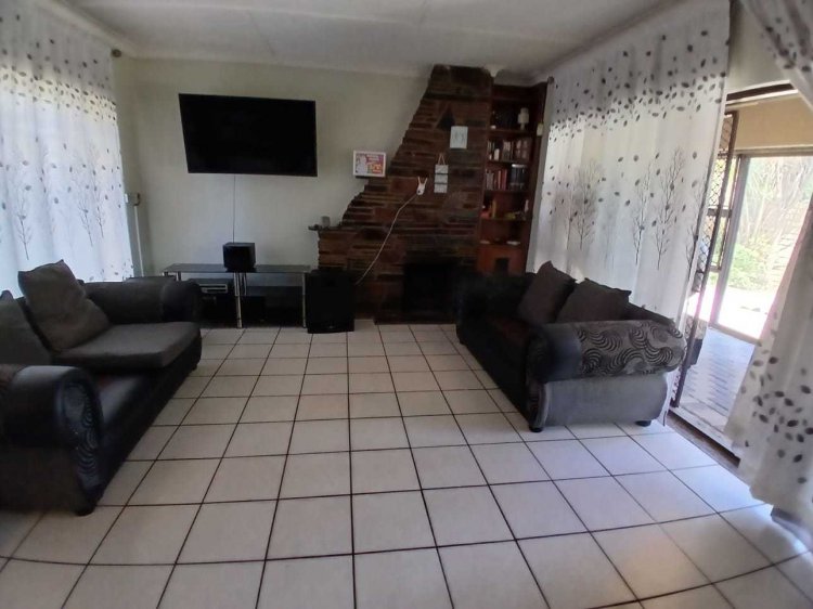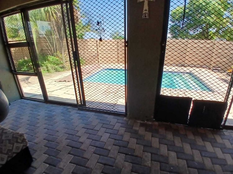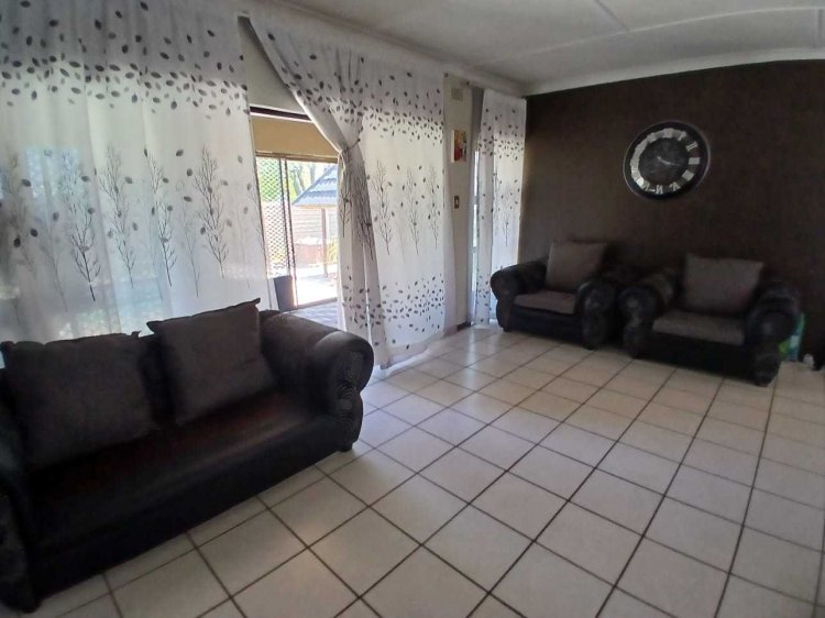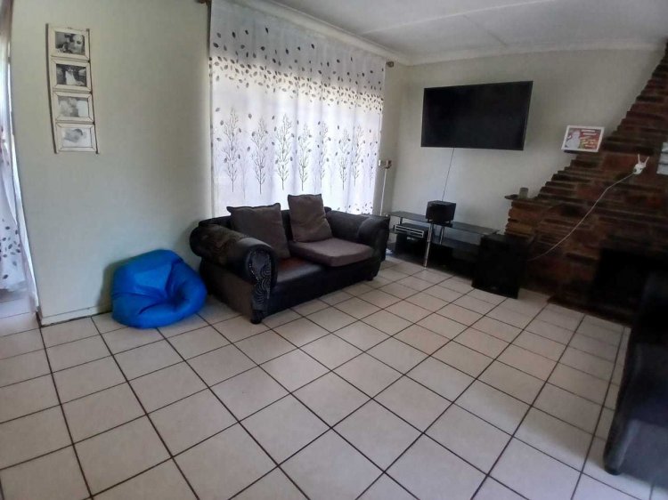 This 3-bedroom family home welcomes you with a spacious entertainment room at the entrance, creating a warm and inviting first impression. From this area, a door leads to the back of the house, where you’ll find a separate flatlet and two covered carports, ideal for extended family or rental potential. The kitchen is functional and open, without fitted units, allowing the new owner to customize it to their taste. It flows seamlessly into the open-plan dining and lounge area, which features a cozy fireplace. From the lounge, one door opens onto a large veranda, perfect for relaxing or entertaining, while a sliding door leads directly to the swimming pool and jacuzzi, creating a true indoor-outdoor lifestyle. A long passage, secured with a safety door from the dining area, leads to the private living quarters. The home offers three bedrooms, all fitted with cupboards. The main bedroom includes an en-suite bathroom with a shower, basin, and toilet. The second bathroom is equipped with a bath, basin, and toilet. Outside, the property is fully equipped for convenience and security. From the automated front gate, a driveway accommodates two vehicles, with two additional carports and automated double garages. Security features include CCTV cameras and fibre boxes installed (ready for activation). The outdoor entertainment area includes a lapa with a fitted braai, a swimming pool, and a jacuzzi, making it ideal for hosting and family gatherings. At the back of the property, the flatlet offers two bedrooms, a kitchen, a bathroom with shower and basin, and a separate toilet. It also includes a 2-car carport, long parking space for up to four cars, and an additional gate providing access to the next street, adding excellent flexibility and access.