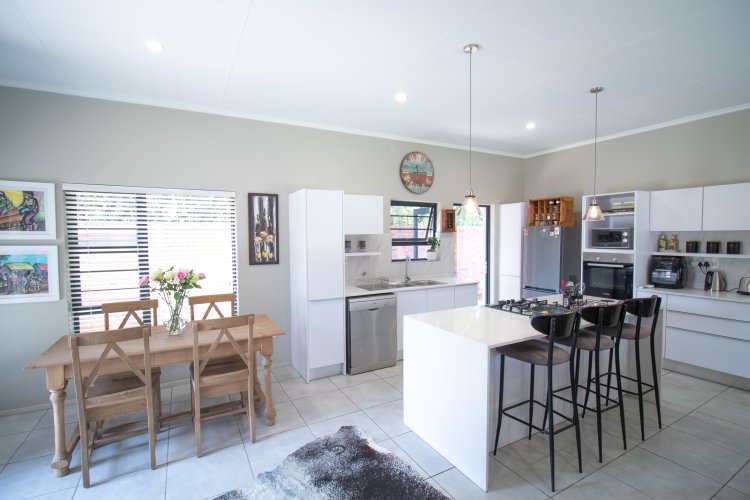 A remarkable aspect of this property is its seamless integration of indoor and outdoor spaces, thanks to folding glass doors that open up to a private garden equipped with a built-in braai .A weather roller blind offers shelter from the sun, wind or rain - ideal for entertaining.