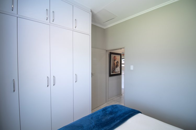 This unit is equipped with a solar system featuring 9 solar panels and a Growatt inverter, accompanied by an Ep04 battery module. It also includes a solar geyser (Geyser Wise) for reduced energy consumption. For added peace of mind, there is a 24-hour guard patrol ensuring a worry-free living experience.