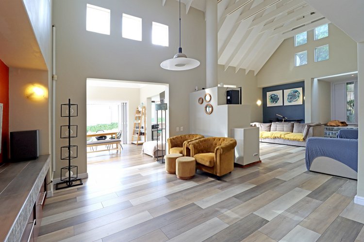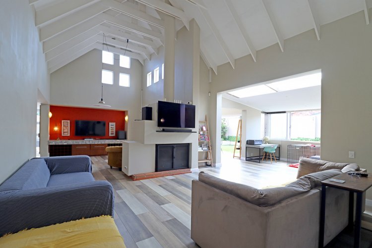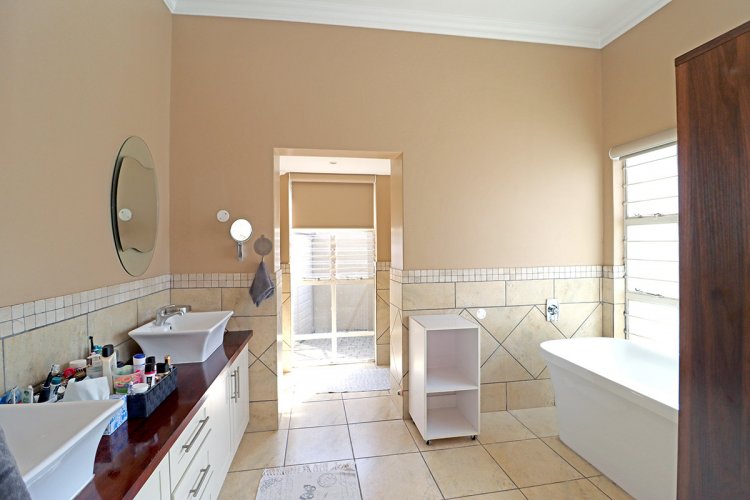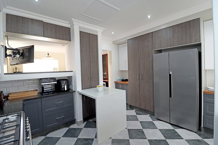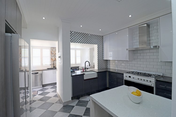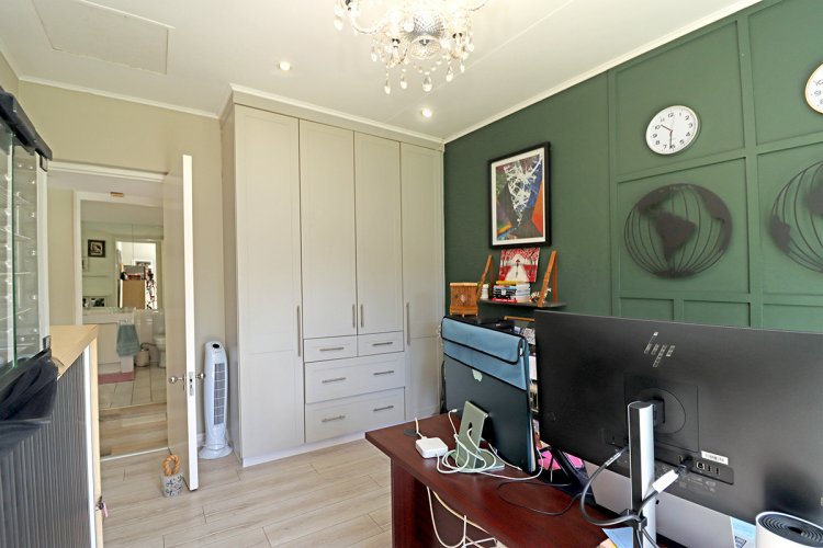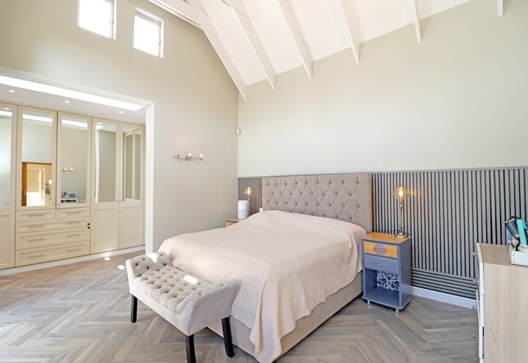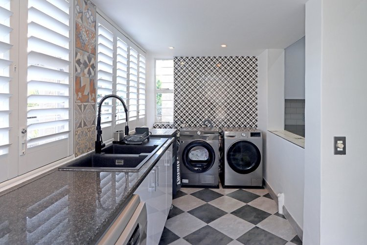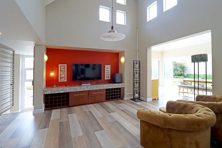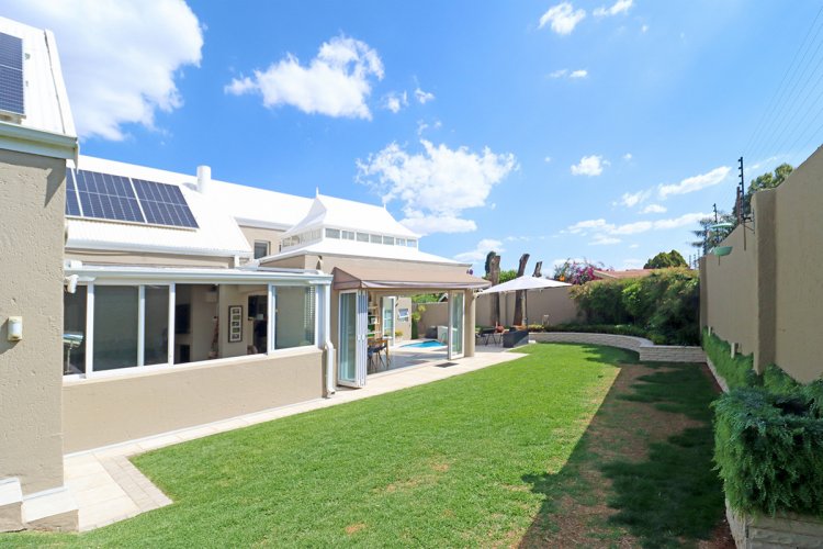 A huge enclosed patio with a built in wood burning braai and a gas braai. Stacker doors open out onto the stunning swimming pool and garden. A thoroughly modern kitchen offers you a state of the art gas stove, hi gloss white cabinets, and a scullery / laundry. Enclosed courtyard.
