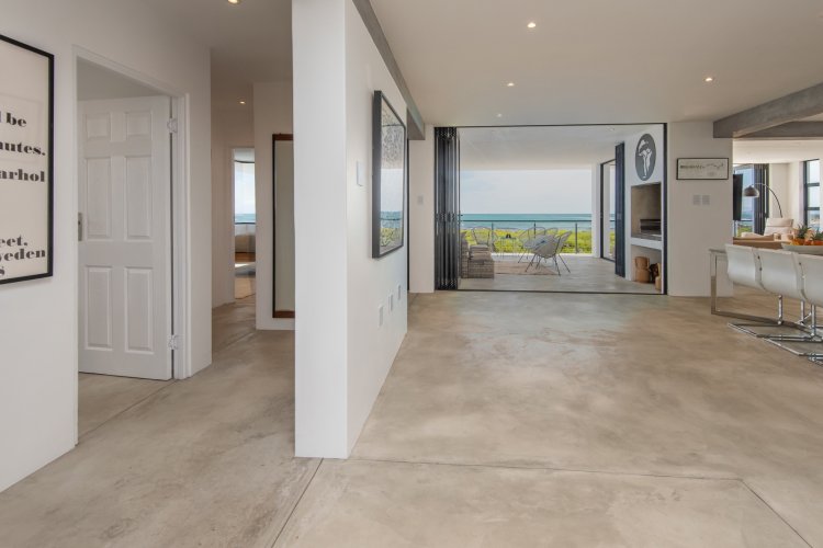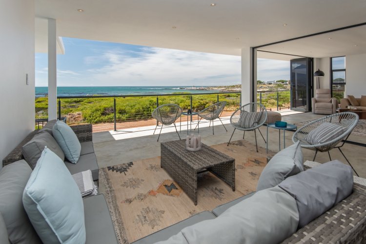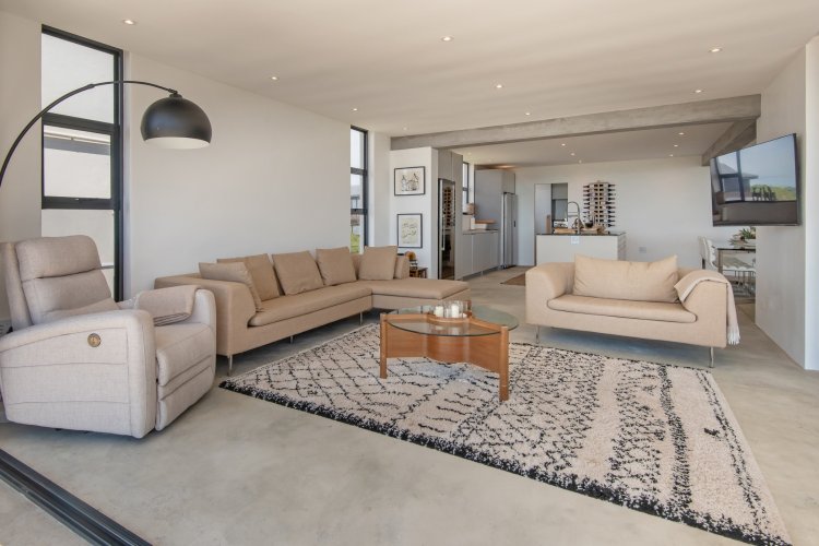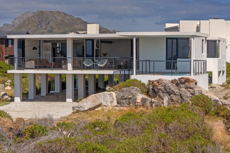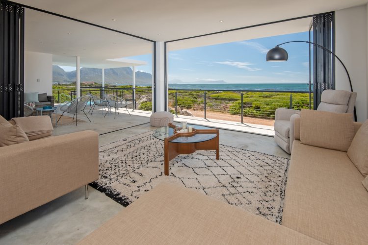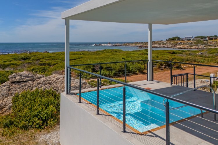 Positioned in the highly desirable Stony Point area of Betty's Bay, this striking new-build home is perfectly oriented to capture spectacular, uninterrupted sea views from every room. Clean architectural lines and an elevated position create a sense of light, space, and connection to the surrounding coastline, making this a truly special seaside residence. The home offers three generous en-suite bedrooms, each enjoying exceptional ocean outlooks. The contemporary kitchen flows seamlessly into the TV lounge — a space designed for relaxation where the ever-changing seascape becomes part of daily living. A neatly concealed scullery keeps the kitchen elegant and functional, while large openings enhance the effortless indoor-outdoor lifestyle. Entertaining is a pleasure on the covered verandah, where the inside–outside feel is complemented by a plunge pool overlooking the ocean — the perfect finishing touch to this coastal retreat. Ideal as a permanent residence or a lock-up-and-go holiday home, the property also includes approved plans to add a second storey, with drawings and quotes available on request. A rare opportunity in one of Betty's Bay's most sought-after pockets — viewings are highly recommended.