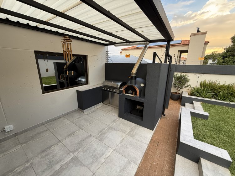 The open-plan living areas flow seamlessly to an outdoor entertainer’s haven featuring a sparkling swimming pool, built-in braai, and a bonus pizza oven — truly an entertainer’s dream. Enjoy breathtaking views that elevate everyday living.