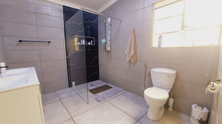 This charming family home offers a warm and inviting atmosphere, perfect for creating lasting memories. Featuring three spacious bedrooms, all with build in cupboards, giving you more than enough storage. Two modern bathrooms, one of which is an en-suit, and an open-plan living and dining room area. . Large windows flood the home with natural light, enhancing the fresh, airy ambiance.