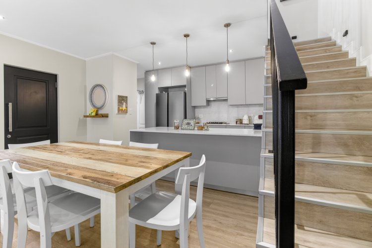 Step inside to a light-filled, open-plan living space where the kitchen, dining, and lounge flow seamlessly together, creating a relaxed yet contemporary environment for daily living and entertaining. Folding glass doors open onto an enclosed patio and a neat, Mediterranean-inspired private garden—an inviting space for weekend braais, playtime with little ones, or unwinding after a busy day.