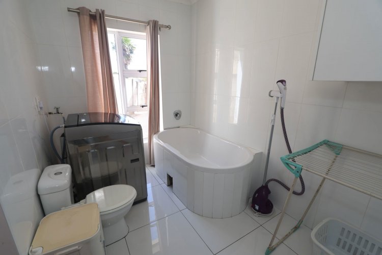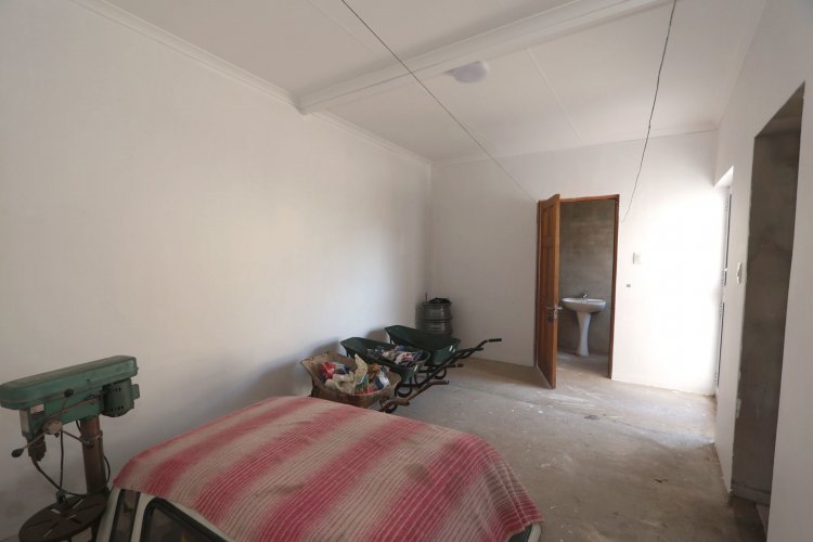 Extra space is provided by a separate laundry room fitted with built-in cupboards, a bath and a toilet. A nearly completed flatlet with one bedroom, lounge, kitchen and bathroom (shower, basin and toilet) adds further flexibility. Two additional rooms – one enclosed and one semi-enclosed with gated access – extend the property's many uses.
