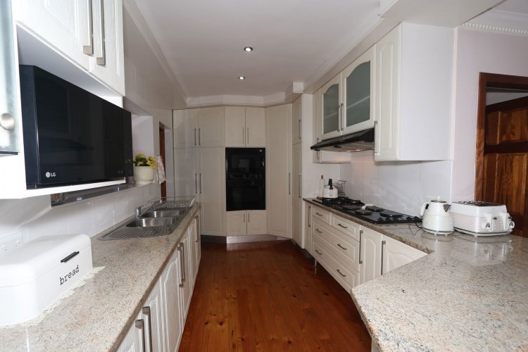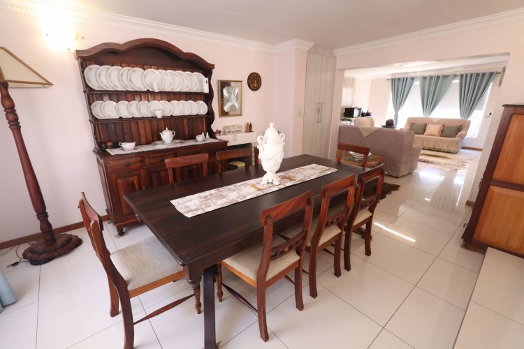 The open-plan family and dining area features its own built-in storage and a characterful fireplace, with doors opening directly onto the outdoor entertainment zone. Three comfortable bedrooms with built-in cupboards are complemented by three bathrooms, including a main en-suite and a separate guest toilet. A combination of rich wooden floors, cool tiles and plush bedroom carpeting brings both practicality and comfort. A study that can also be used as an additional fourth bedroom.