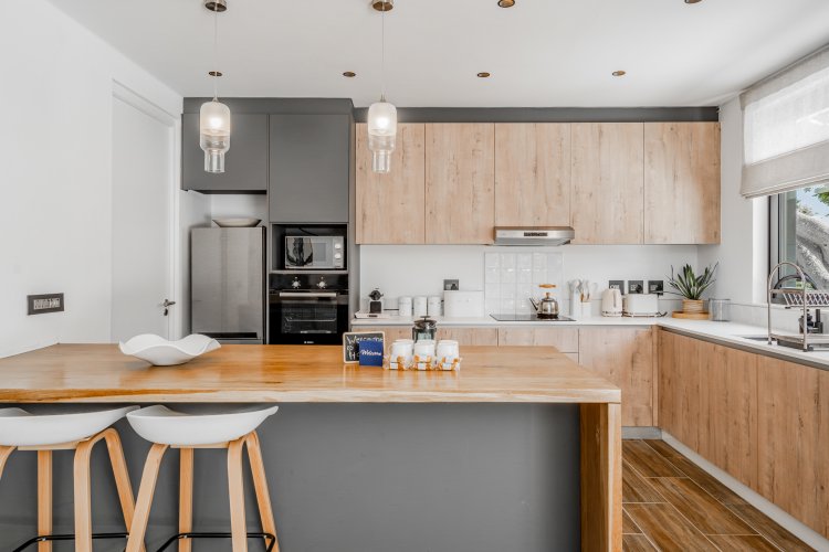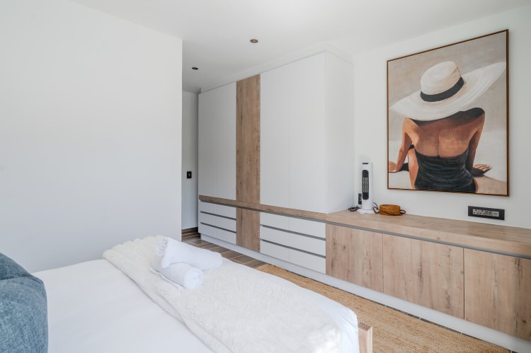 The kitchen is modern and functional, making it ideal for both everyday living and entertaining. Outside, the private pool and sun soaked patio, are set against a striking mountain backdrop, offering a tranquil retreat just moments from the energy of the beachfront.