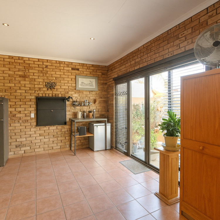 The open-plan lounge, kitchen, and dining area create a warm, seamless flow that enhances everyday living and makes entertaining effortless. Outside, a private braai area provides the perfect setting for relaxed summer evenings and weekend get-togethers.