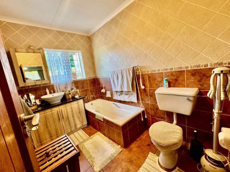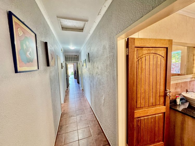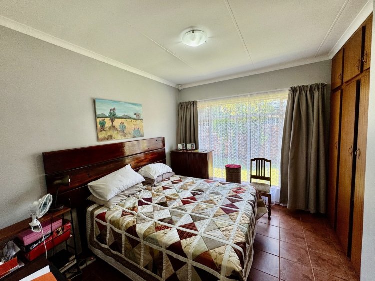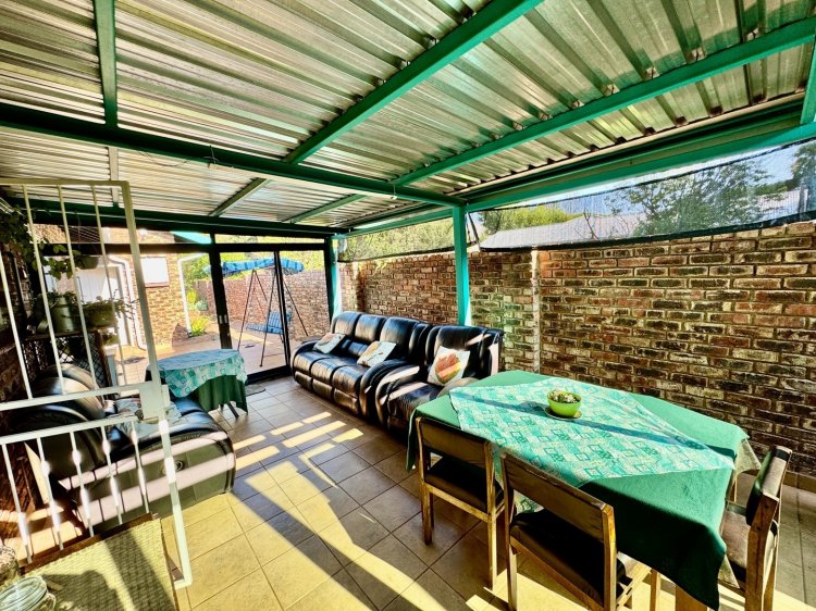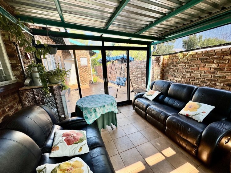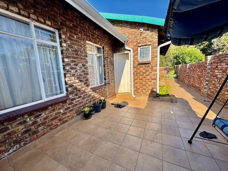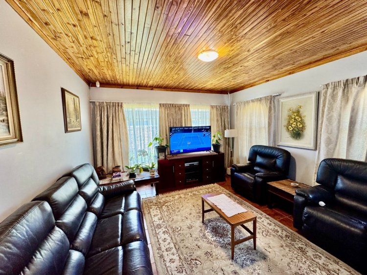 -3 spacious bedrooms. 2 full bathrooms + outside toilet. Large kitchen with scullery. Covered outdoor stoep. Big living / TV room. Neat dining room. Study / office room. Double garage. Covered parking and a well-kept garden.
